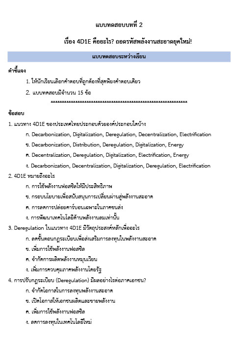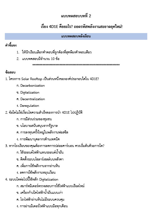 บทเรียนที่ 2 เรื่อง4D1E คืออะไร? ถอดรหัสพลังงานสะอาดยุคใหม่!