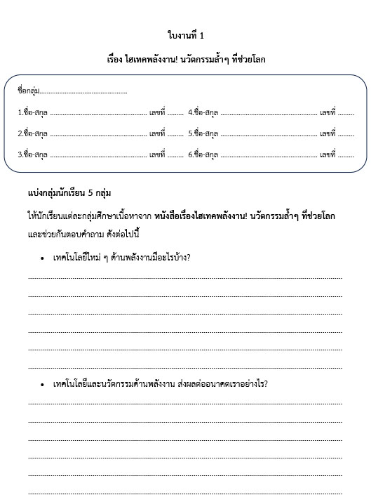 ดาวน์โหลด ใบงาน สำหรับครูผู้สอน