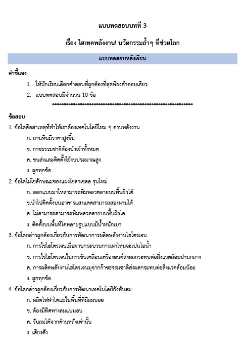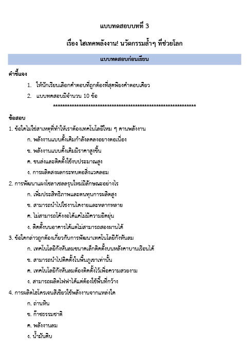 บทเรียนที่ 3 เรื่องไฮเทคพลังงาน! นวัตกรรมล้ำๆ ที่ช่วยโลก