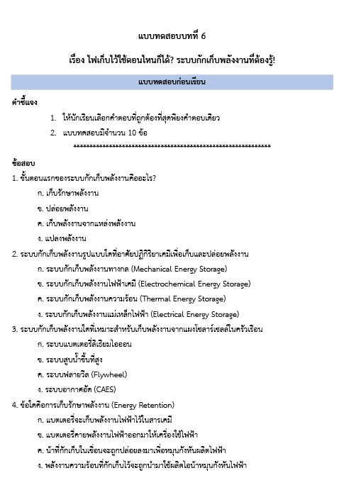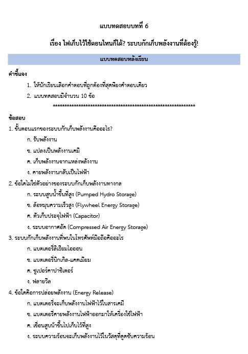 บทเรียนที่ 6 เรื่องไฟเก็บไว้ใช้ตอนไหนก็ได้? ระบบกักเก็บพลังงานที่ต้องรู้!