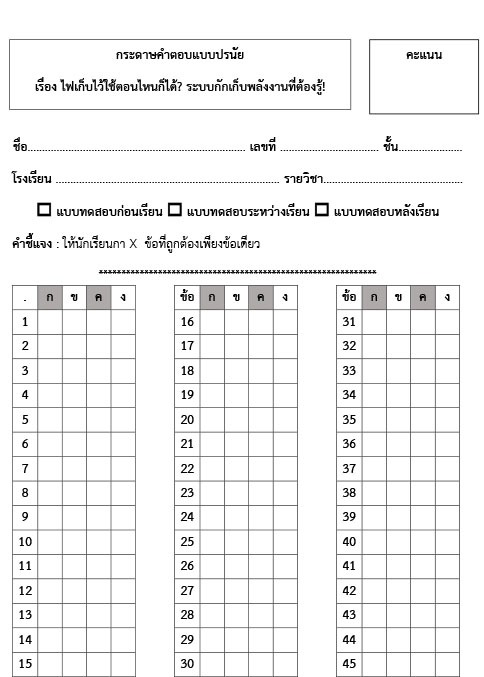 กระดาษคำตอบแบบทดสอบ บทเรียนที่ 6